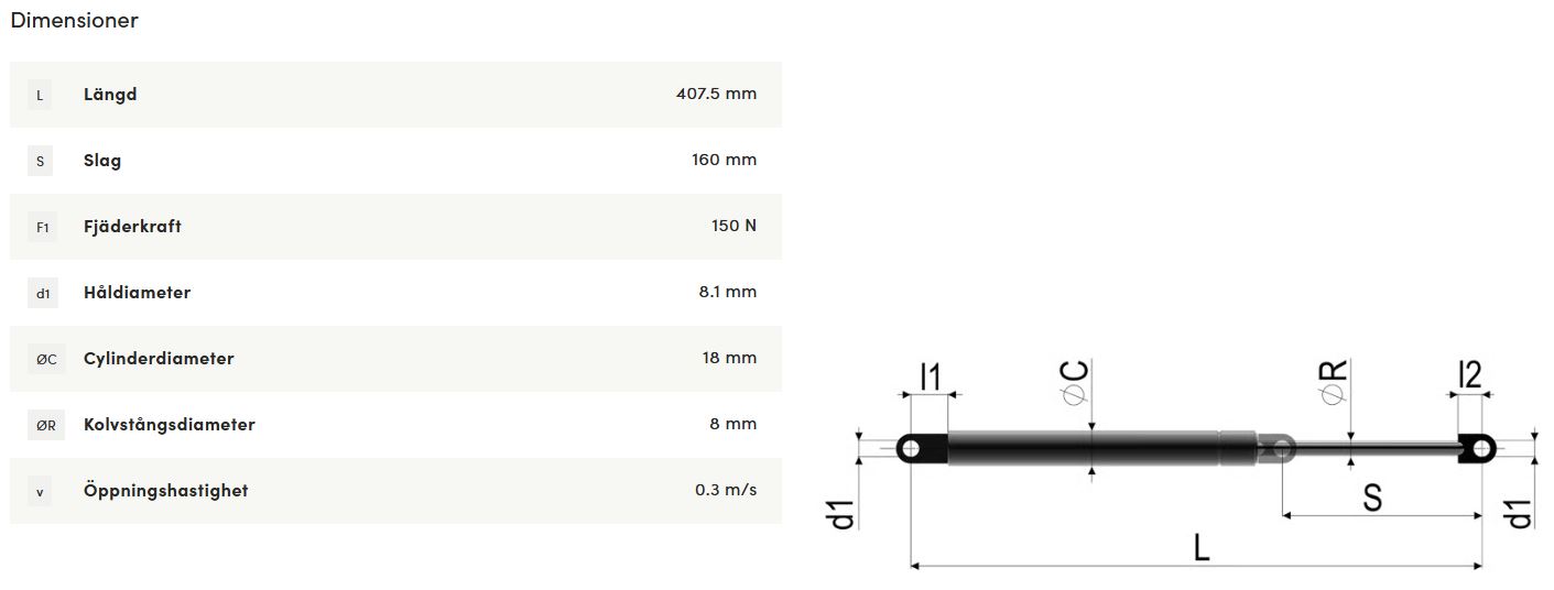 Produktbilden är en generell bild på en gasfjäder, det betyder att den kanske inte ser ut exakt som den i din takbox.