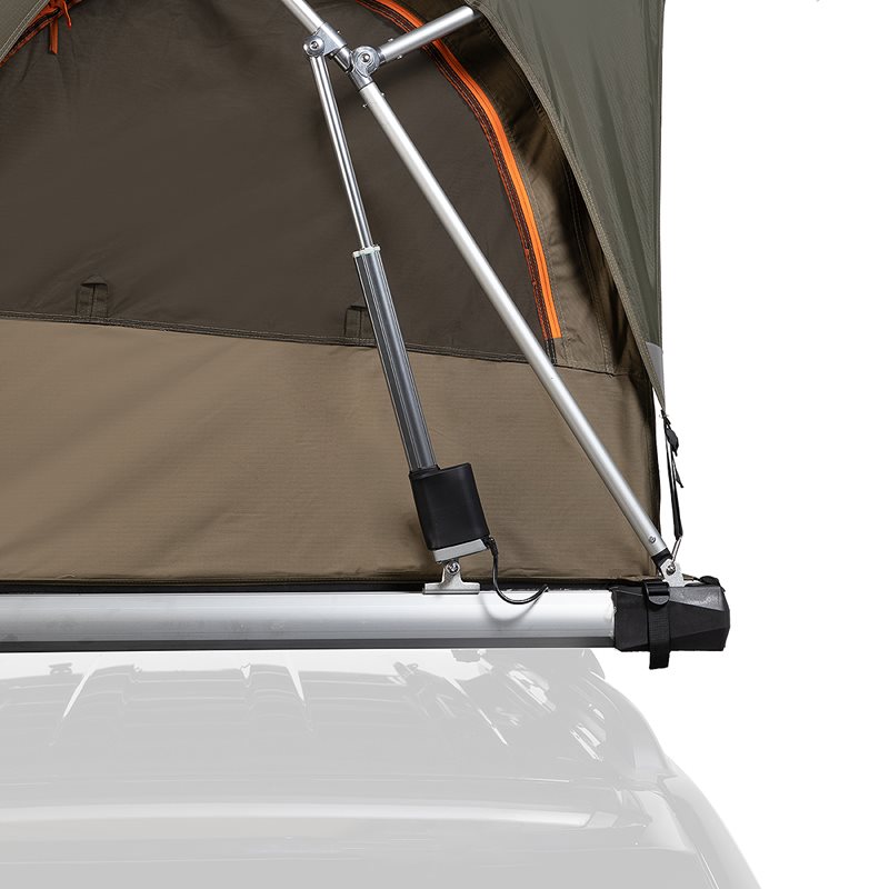 Dometic TRT120E fälls upp på några minuter tack vare eldrift (12V) och fjärrkontroll (ingår). En garanterat god nattsömn på en 5 cm tjock skummadrass med hög densitet som är tillräckligt stor för att bekvämt passa två personer. Det är enkelt att gå in i tältet tack vare den lätta, teleskopiska aluminiumstegen.