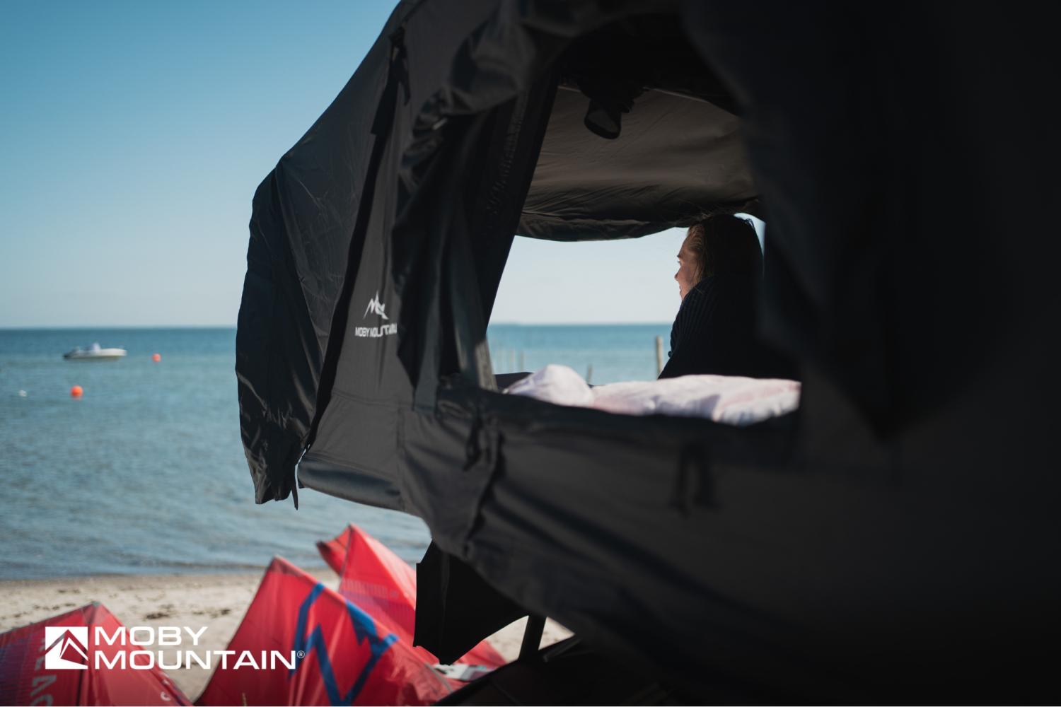 Hardshell-lådan är en bra storlek som passar taket på de flesta stationbilar eller stadsjeepar. Det smarta är att tältet fälls ut över sidan av bilen, så att du får ett större liggande område än i de flesta andra taktält.
