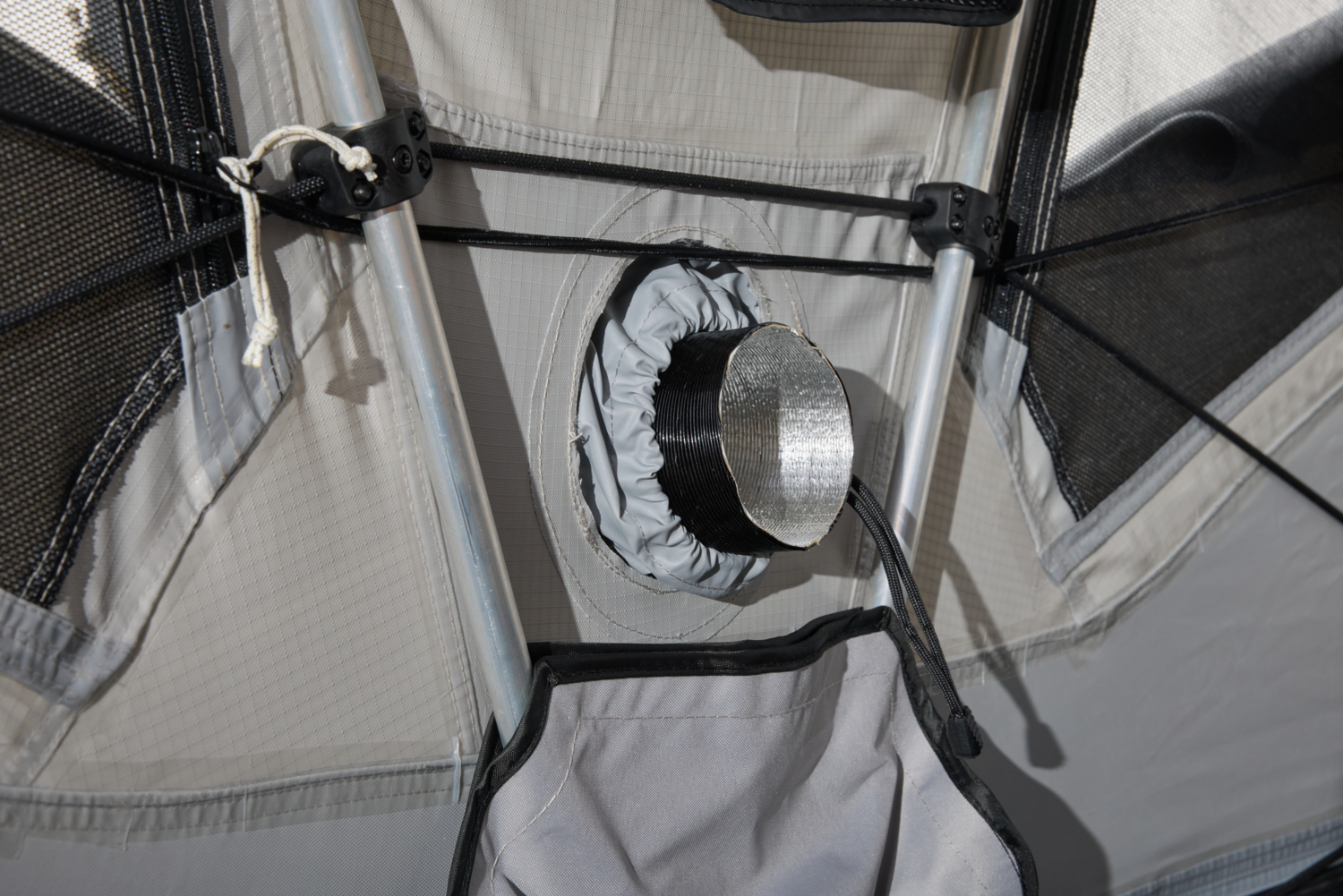 - Inbyggd port vid sidan av tältet för AC och värmare, för att reglera temperaturen både vid höga och låga temperaturer