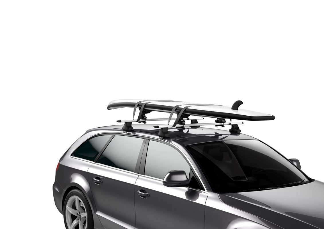 En mångsidig horisontell kajakhållare med stora vadderade och flexibla stöd som kan anpassas för en mängd olika skrovformer och paddelsurfbrädor.