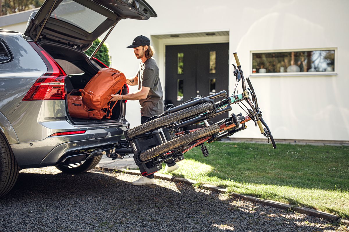 - Enkel lastning av cyklar tack vare löstagbara cykelarmar med låsbara momentbegränsande Thule AcuTight-vred som klickar när det optimala vridmomentet har uppnåtts