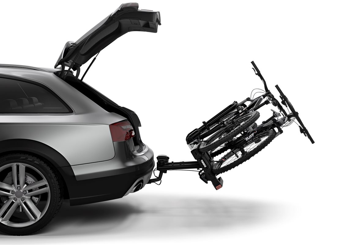 Den helt hopvikbara, kompakta och lättanvända cykelhållaren för dragkroksmontering, som passar alla typer av cyklar.