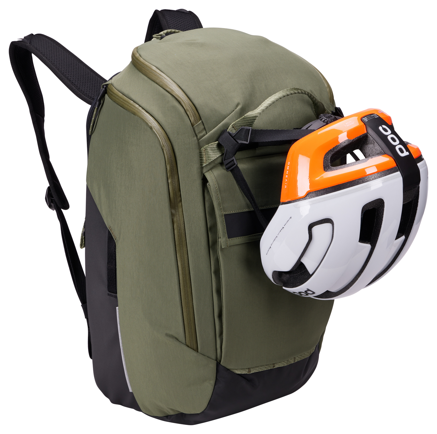 - Fäst hjälmen med remmar på väskans framsida för att ha händerna fria