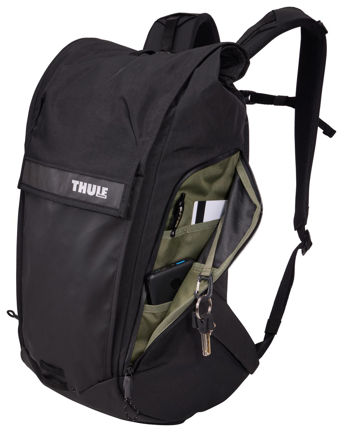 Thule Paramount cykelpendlingsryggsäck hjälper dig att ta dig an staden bekvämt med ett brett utbud av praktiska funktioner. Den hoprullbara överdelen kan expanderas för att ge mer packutrymme och skydda dina tillhörigheter från väder och vind. När du är på språng kan du enkelt komma åt din telefon från sidofickan eller småföremål från den dedikerade förvaringsfickan på sidan. På kvällen gör cykellyset och de reflekterande detaljerna att du syns från alla vinklar. När du är framme vid din destination kan du förvara hjälmen enkelt med fyrpunktsfästet och sträcka dig efter ditt cykellås i ytterfickan. För ultimat komfort är ryggsäcken helt justerbar för att passa din ram och rymmer olika typer av last.