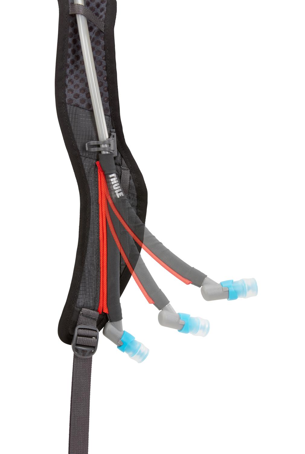 Vätskeryggsäcken har ett avtagbart Koroyd-skydd i lätt material med CE-certifiering nivå 1 för att skydda ryggens mitt och ryggrad från stötar och skador. Ryggsäcken har optimal viktfördelning tack vare den låga tyngdpunkten, vilket ger bättre köregenskaper och minskad belastning på musklerna. Den överlägsna stabiliteten och säkra passformen är också perfekt för krävande utförsåkning, hopp och endurolopp. Thule ReTrakt vätskeslang har en unik magnetisk design som gör att slangen automatiskt hamnar på plats när du släpper den efter att ha druckit, så att du kan hålla ögonen på vägen.