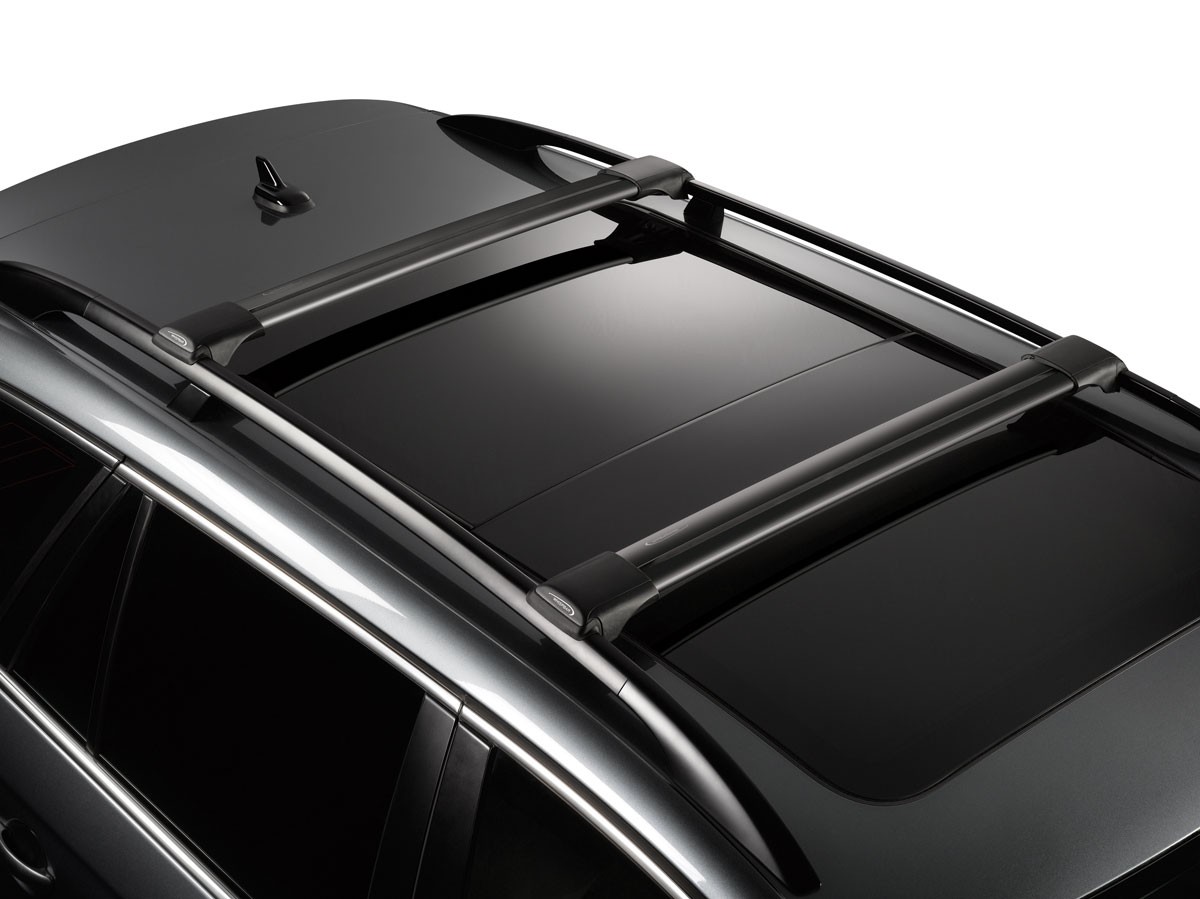 Aerodynamiskt vingformad profil i svartlackerad aluminium med låg profil och integrerad design för exceptionellt tyst körning och enkel installation av tillbehör. Yakima FlushBar sticker inte ut på sidorna (som t ex Thule WingBar Evo) utan avrundas fint på biltaket, se bilder. De är låga och integreras fint med bilkarossen.