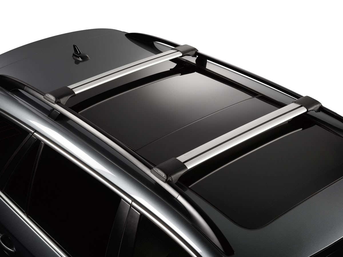 Aerodynamiskt vingformad profil i aluminium med låg profil och integrerad design för exceptionellt tyst körning och enkel installation av tillbehör. Yakima FlushBar sticker inte ut på sidorna (som t ex Thule WingBar Evo) utan avrundas fint på biltaket, se bilder. De är låga och integreras fint med bilkarossen.